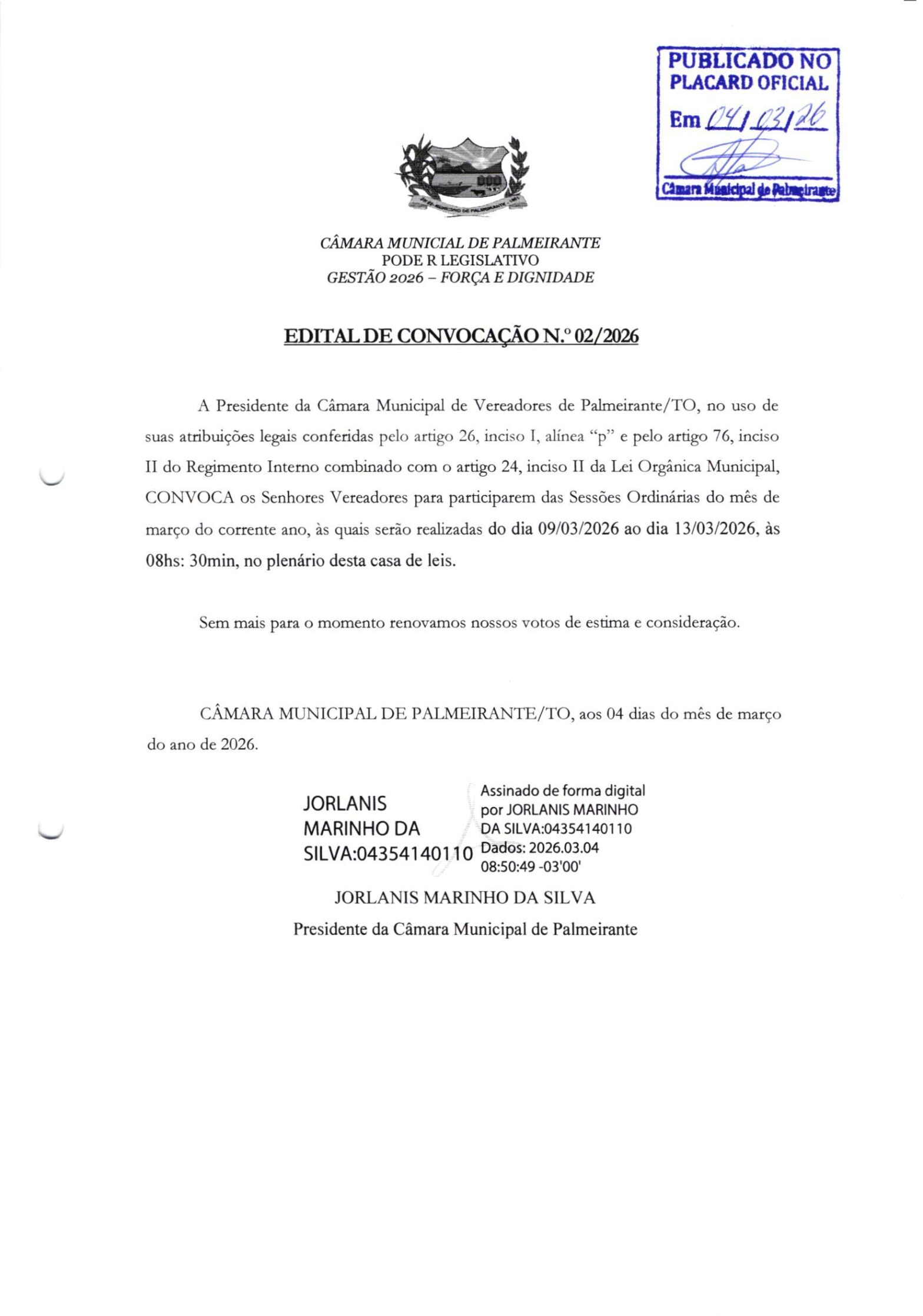 InícioPublicaçõesEdital de Convocação N° 02/2026 Edital de Convocação N° 02/2026 Publicado em 4 de março de 2026Por Daniela Alves de Aquino